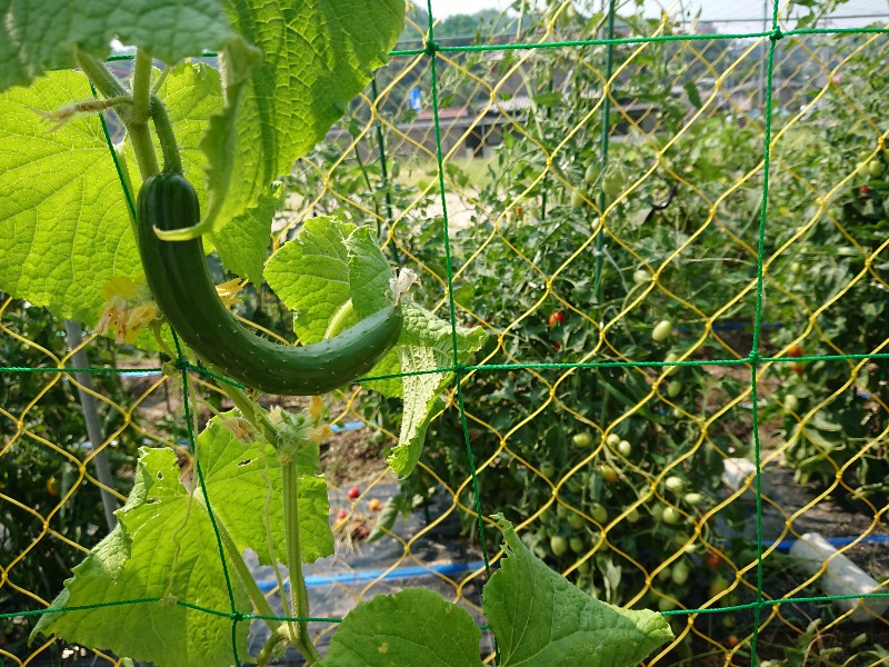 きゅうり越しのトマト